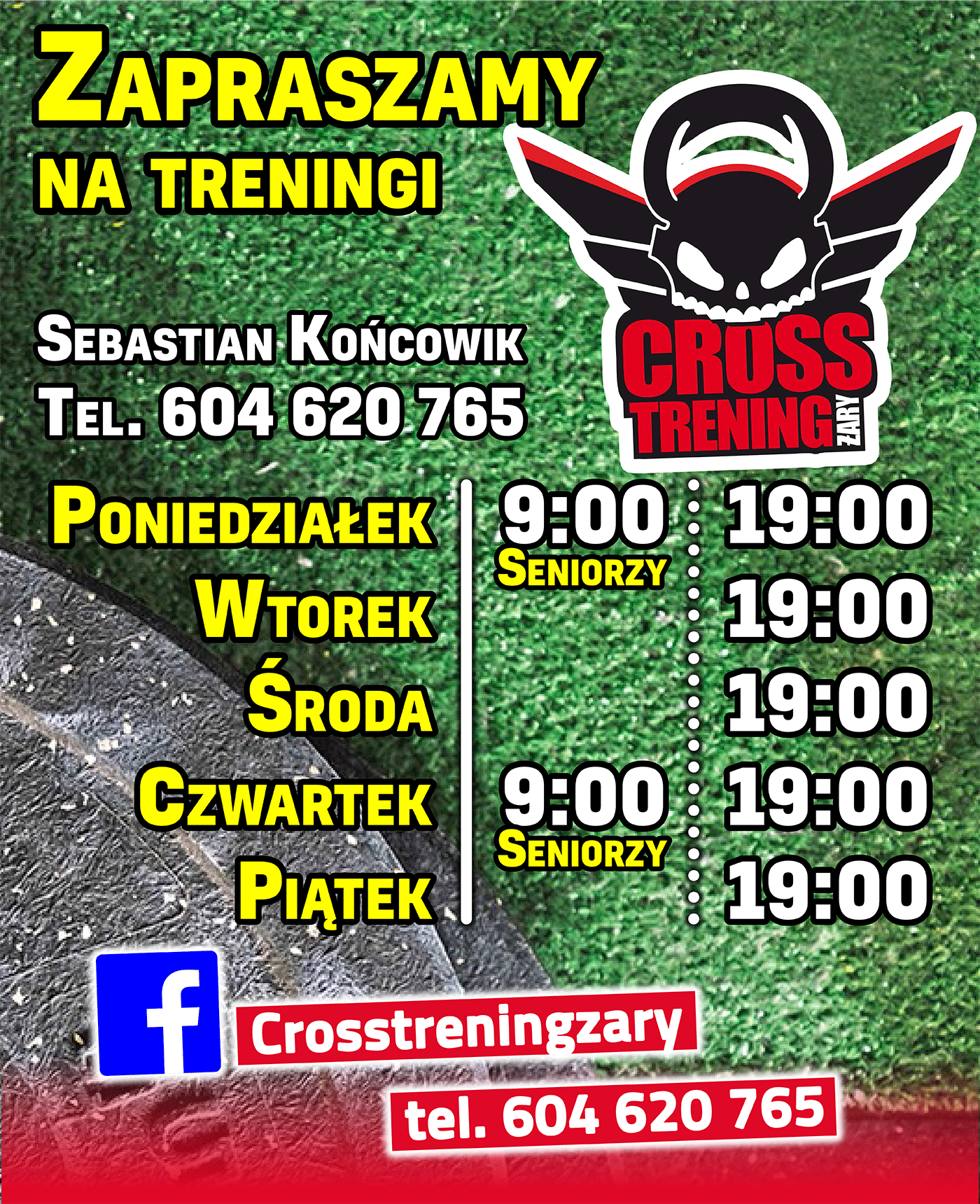 Zapraszamy osoby powyżej 16-go roku życia na treningi ogólnorozwojowe metodą cross fit, Zajęcia są niezwykle skuteczne w kształtowaniu szerokiej sprawności, są bezpieczne i doskonale wpływają na poprawę sylwetki. Pozwalają pozbyć się zbędnej tkanki tłuszczowej, przy czym dają mnóstwo satysfakcji i wpływają na dobre samopoczucie. Zajęcia prowadzone są w pełni wyposażonej sali treningowej, przez profesjonalnego trenera.Sebastian Końcowik: Instructor Crossfit level 1 (Numberg 2012r.) Weightlifting Trainer (Kopenhaga 2014r.) Crossfit Gymnastics (Warszawa 2016r.) Instruktor Podnoszenia Ciężarów (Warszawa 2021r.) Instruktor Karate.